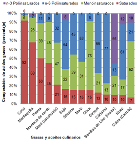 Primero tenemos que saber que los aceites presentan distintos tipos de grasas, estas son: monoinsaturadas, poliinsaturadas (“grasas saludables”) y saturadas (“grasas no saludables”).