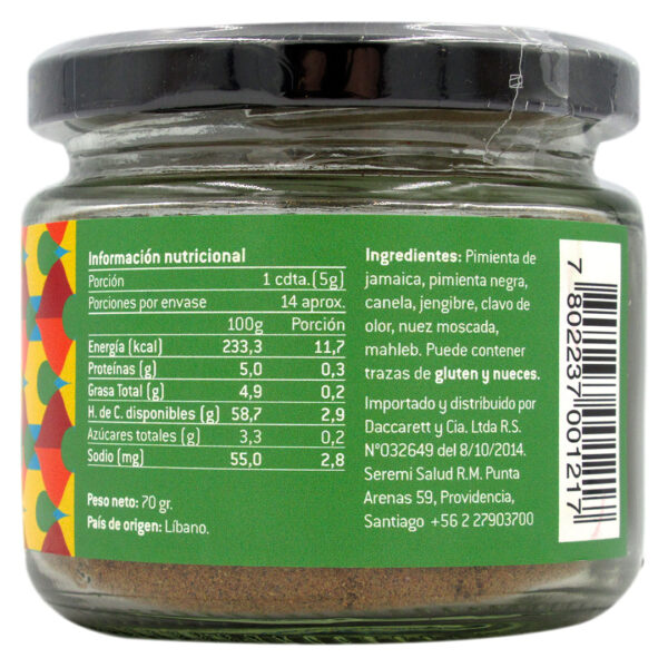 7 especias Condimento Oriental Baharat 70 grs Marca Suk