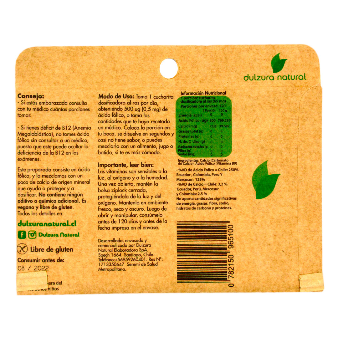 Acido Folico 120 Porciones de 500 ug Marca Dulzura Natural