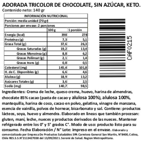 La Adorada Tricolor de Chocolate Keto Tremus es una creación que combina arte, sabor y equilibrio nutricional en una mini torta única.
