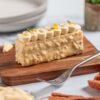 En su interior, un toffee de avellanas y caramelo aporta suavidad y equilibrio, mientras que una capa superior de ganache vegano de chocolate 85 % le da el toque final de elegancia y amargor sutil.