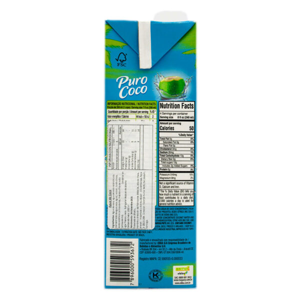 Agua de Coco Esterilizada Natural 1 LT, Marca Puro CoCo