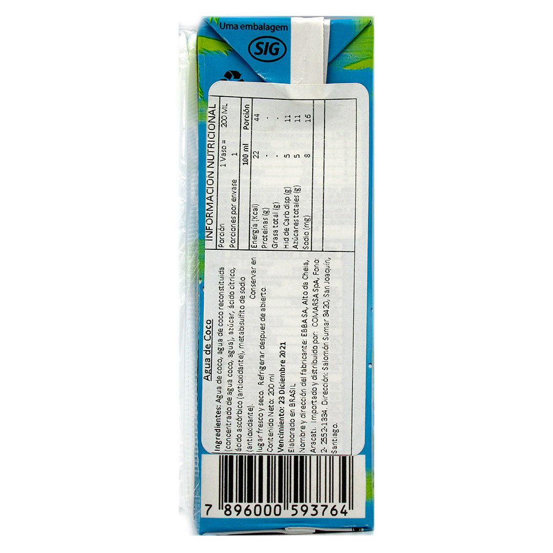Agua de Coco Esterilizada Natural 200 ml, Marca Puro CoCo