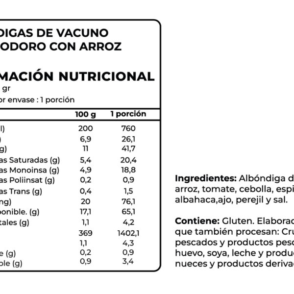 Las Albóndigas de Vacuno al Pomodoro con Arroz Tremus son un plato gourmet y artesanal que combina el sabor casero de la carne con una salsa pomodoro natural.