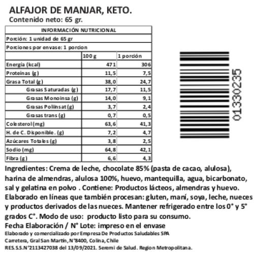 - Manjar artesanal keto – echo con crema y alulosa 100%. Relleno cremoso, sin azúcar añadida y con bajo índice glicémico.