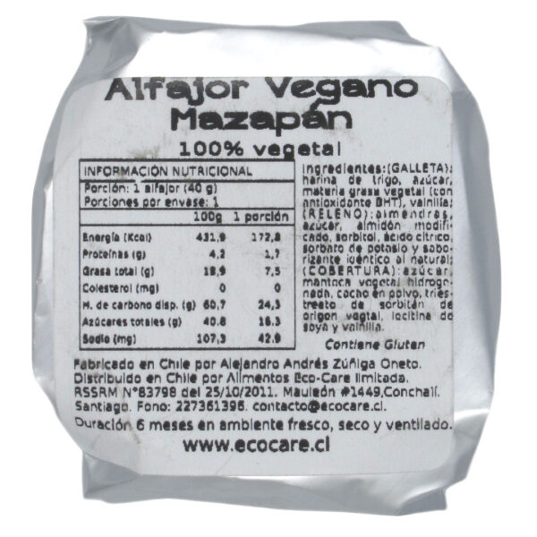 Cobertura: azúcar, manteca vegetal hidrogenada, cacao desgrasado en polvo (15%), lecitina de soya, vainillina. Puede contener trazas de leche.