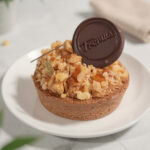 Elaborada con masa sablée keto, rellena con frangipane de nuez y crema de manjar, cubierta de nueces caramelizadas y decorada con chocolate amargo. Endulzada con alulosa, y baja en carbohidratos, todo en una producción artesanal.