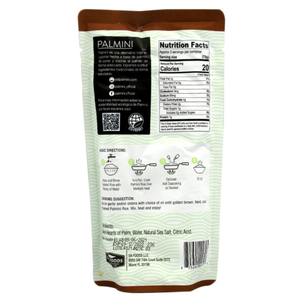 - Palmini es un sustituto bajo en carbohidratos elaborado a partir de una planta natural conocida como Palmito.