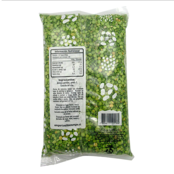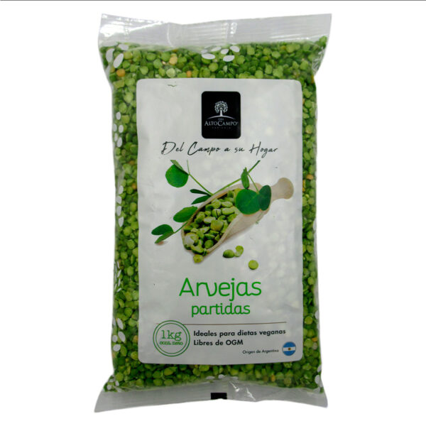 Arvejas Verdes partidas 1 kg marca Alto Campo