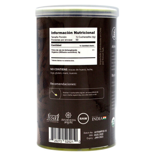 Ashwagandha Sin Gluten Vegana Sin GMO Organica 200 gr Marca Konun