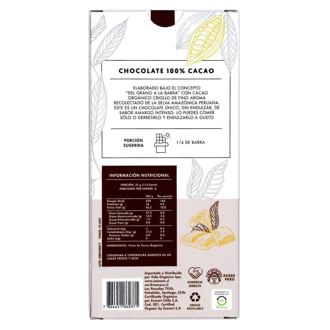 Ingredientes: pasta de cacao orgánica.