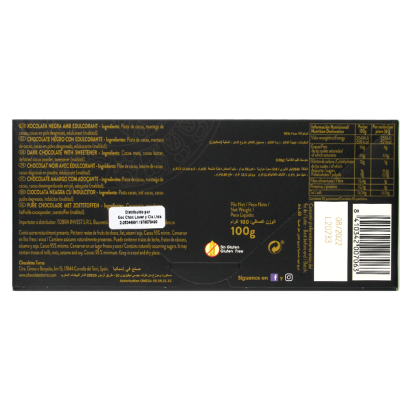 Chocolate negro 95% cacao con edulcorante.