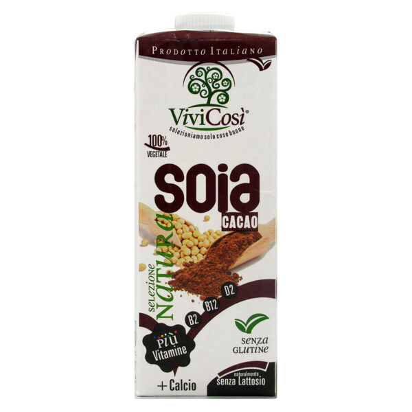 Bebida Vegetal de Soya Cacao, sin Azucar, con Vitaminas y Calcio, Libre de Gluten, 1 Lt, Marca Vivicosi