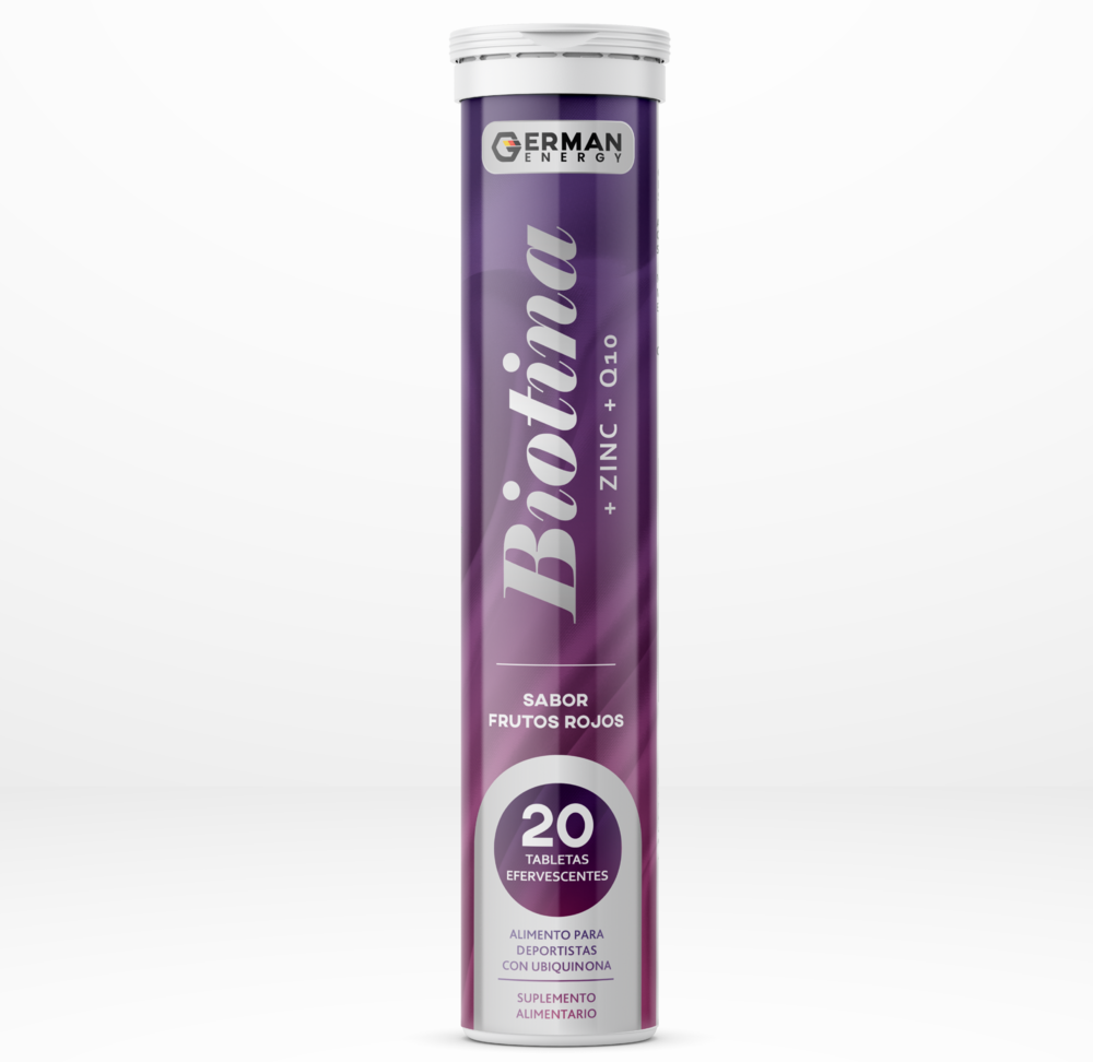 Biotina Zin Q10 Sin Gluten Sabor Frutos Rojos 20 Tabletas Efervescentes Marca German Energy