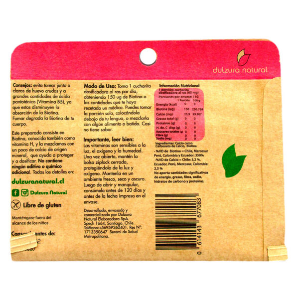 Sé el primero en valorar “Biotina110 Porciones de 150 ug Marca Dulzura Natural”