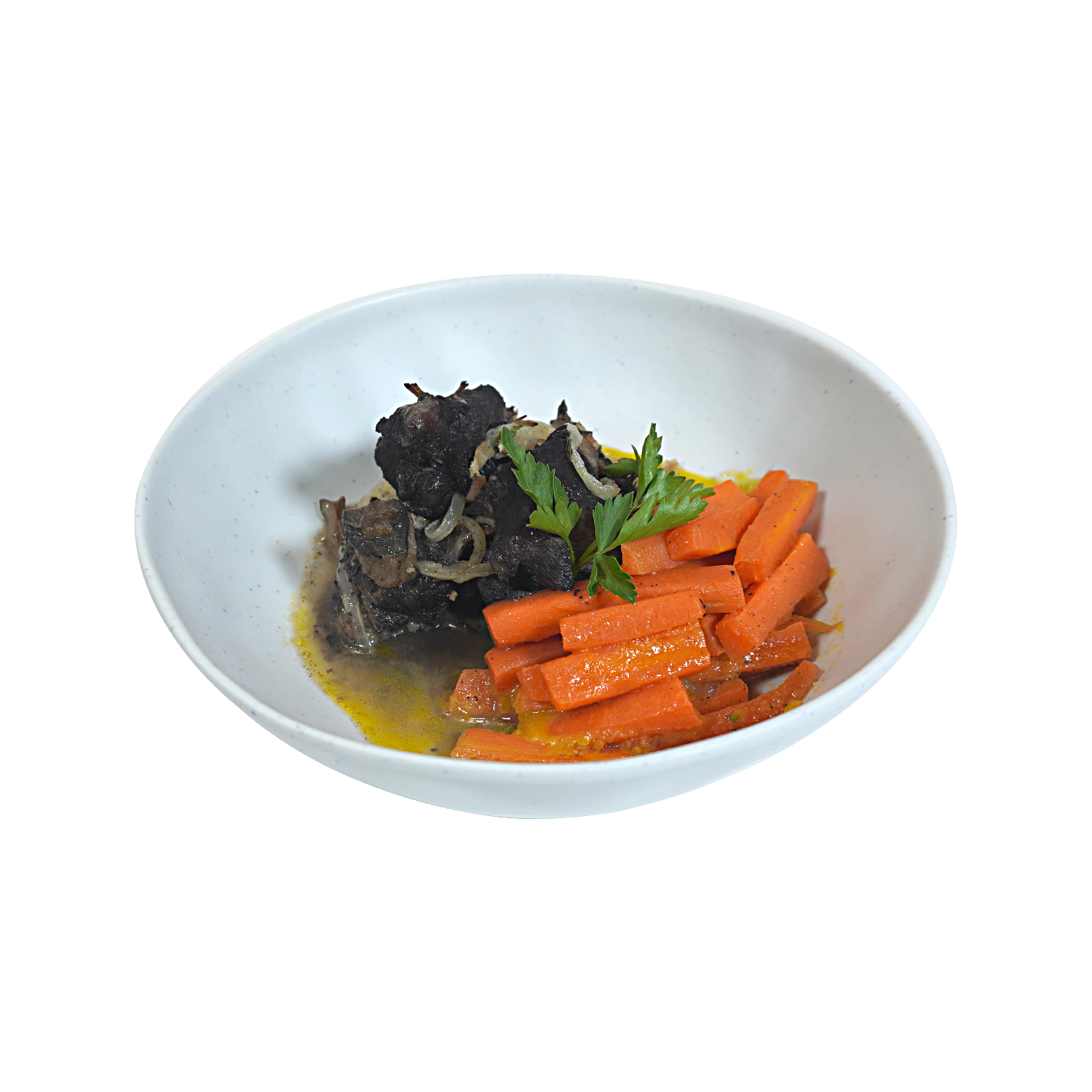 Nuestro Bourguignon con Zanahorias Glaseadas te ofrece un corte de carne jugoso, cocido lentamente en vino tinto, con un toque de tocino ahumado y mantequilla. Las zanahorias glaseadas, caramelizadas, aportan el contraste perfecto entre lo dulce y lo salado, mientras que la salsa enriquecida con ajo, cebolla y champiñones te cautivará en cada bocado.