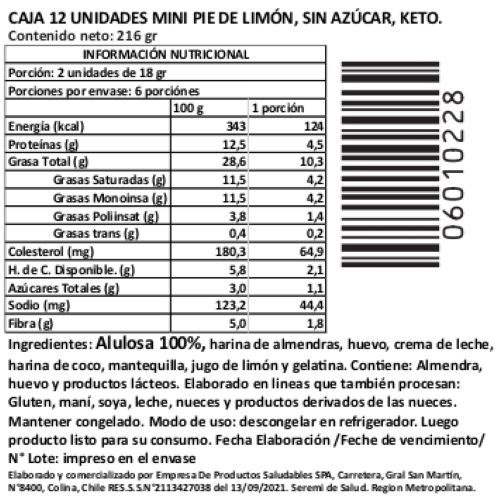 La Caja de 12 Mini Pie de Limón Keto, Sin Azúcar Añadida, Tremus es una versión saludable y equilibrada del clásico postre, elaborada con ingredientes nobles y bajo contenido de carbohidratos.
