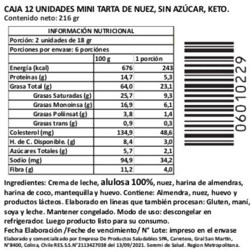 La Caja de 12 Mini Tartas de Nuez Keto, Sin Azúcar Añadida, Tremus combina la suavidad de una masa keto artesanal con el sabor intenso y natural de las nueces frescas.