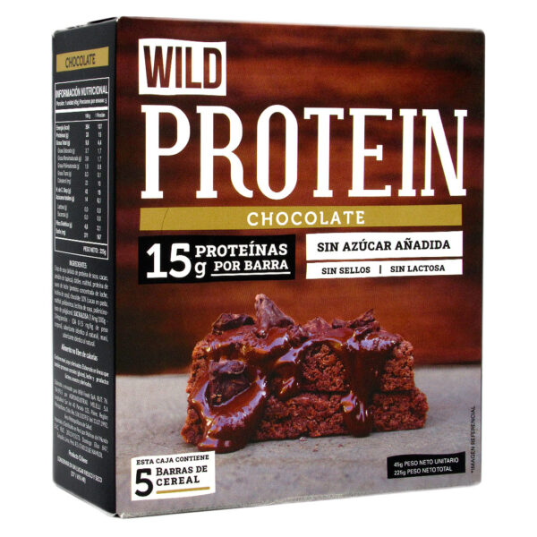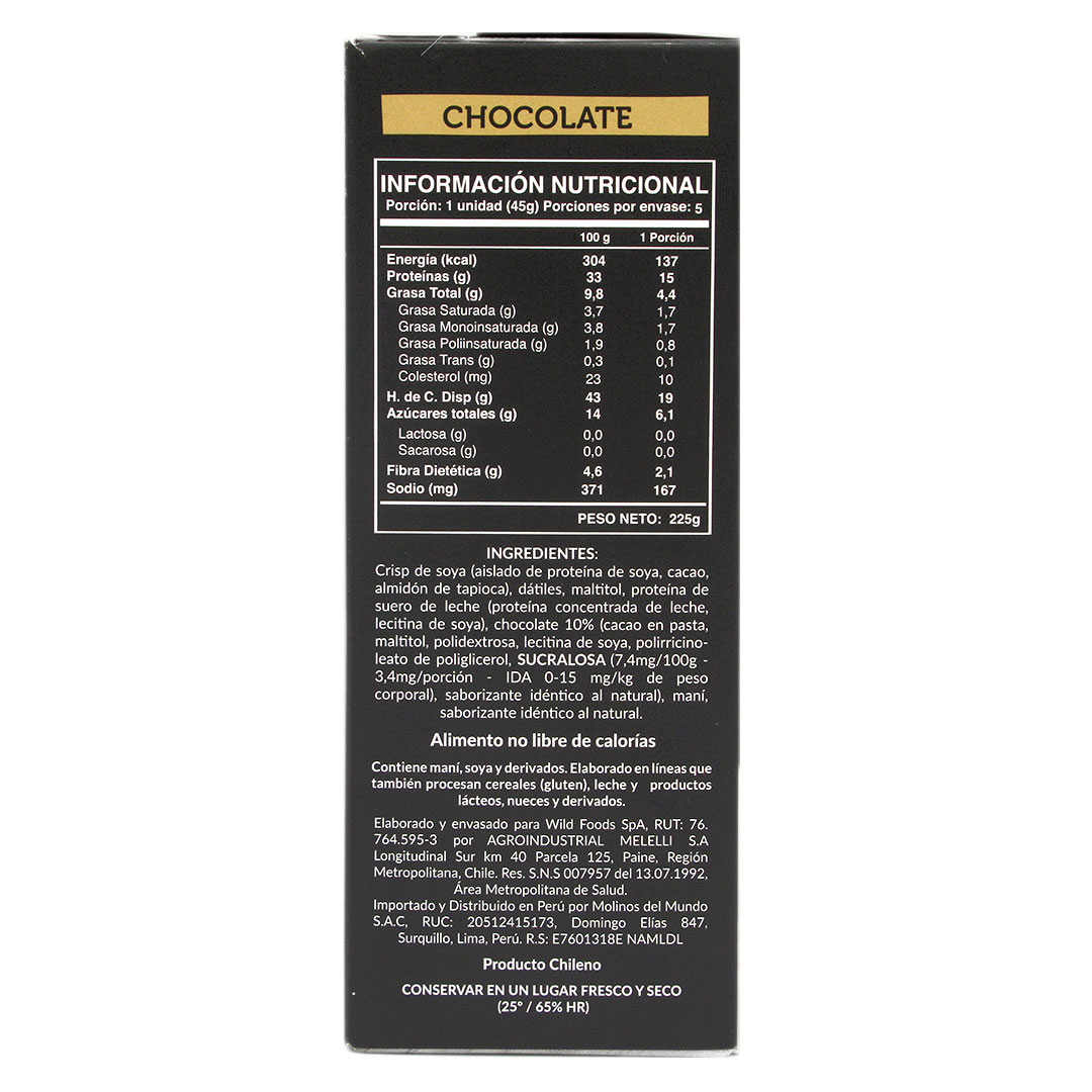 Caja de 5 Barras de Proteina Sabor Chocolate 25 gr marca Wild Foods