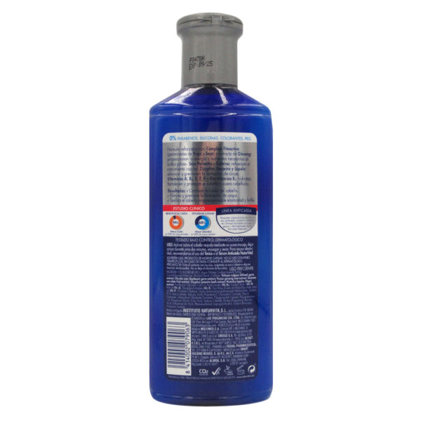 Champú de uso frecuente que elimina la caspa y previene su aparición y tonifica el cabello proporcionándole elasticidad y brillo. Contiene un elevado porcentaje de ingredientes naturales, como los extractos de Saw Palmetto, Zizyphus Joazeiro, Lúpulo, Ginseng y Complejo Fitoactivo (obtenido de semillas de Trigo y Soja). Estos activos vegetales proporcionan al bulbo piloso energía y nutrientes para así favorecer el crecimiento del cabello. La Cafeína permite activar la microcirculación del cuero cabelludo, ayuda que los principios activos se absorban con más facilidad y así reforzar el crecimiento capilar.