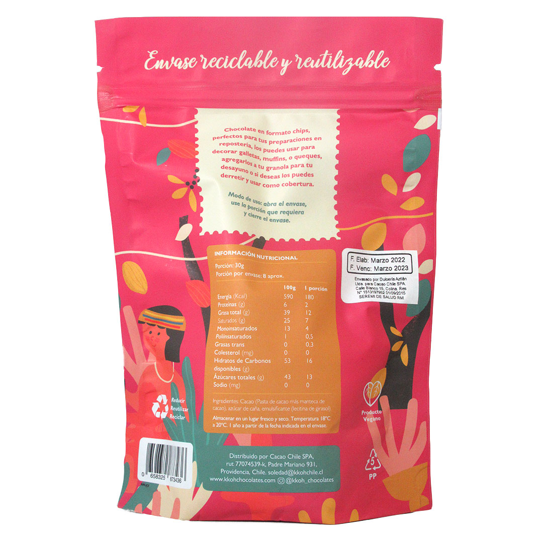 250 grChocolate en formato chips, perfectos para tus preparaciones en repostería.