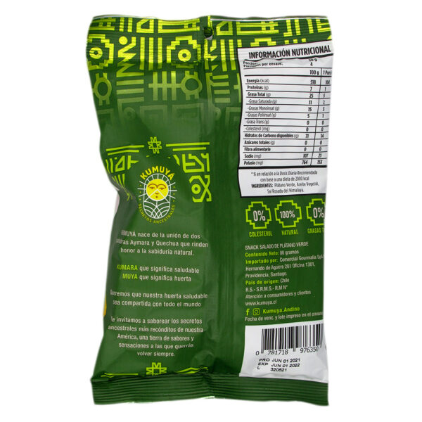 Exquisito Snack salado de plátano verde con sal rosada del Himalaya, vegano, kosher y sin gluten.