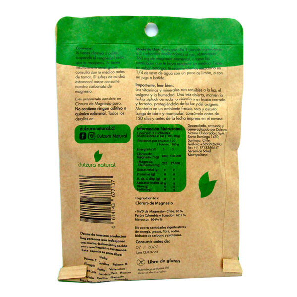 Sé el primero en valorar “Cloruro de Magnesio 120 poriones con 270 mg contiene 125 grs marca Dulzura Natural”