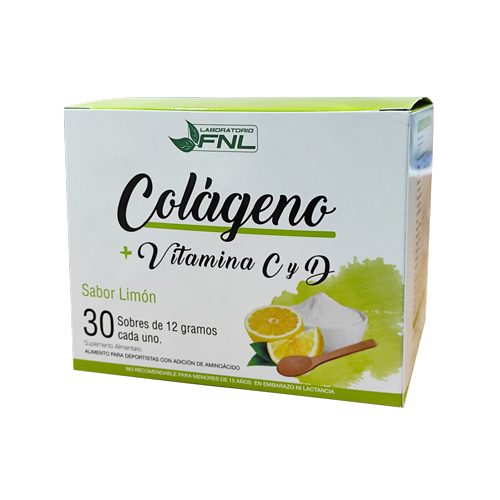 Colageno Sabor Limón + Vit C + D, 30 sobres, Marca FNL