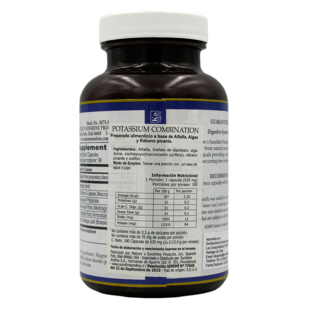 Combination Potassium, 180 Capsulas, Marca Nature´s Sunshine