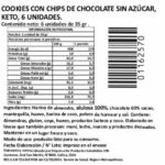Cookies keto con chips de chocolate sin azúcar añadida. Elaboradas artesanalmente con harina de almendra y coco, endulzadas con alulosa 100%. 6 unidades (210 g) y solo 3 g de carbohidratos por porción.