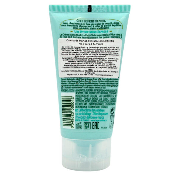 Crema de Manos Hidratación Express de Aloe Vera y Te Verde 75 ml marca Le Petit Olivier