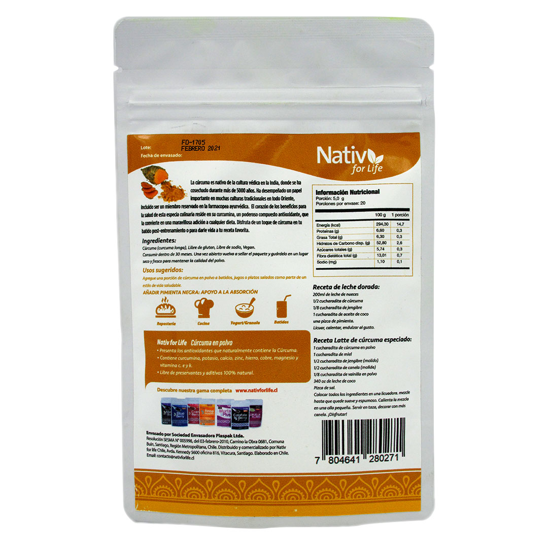 Curcuma en Polvo 100 grs Marca Nativ for Life