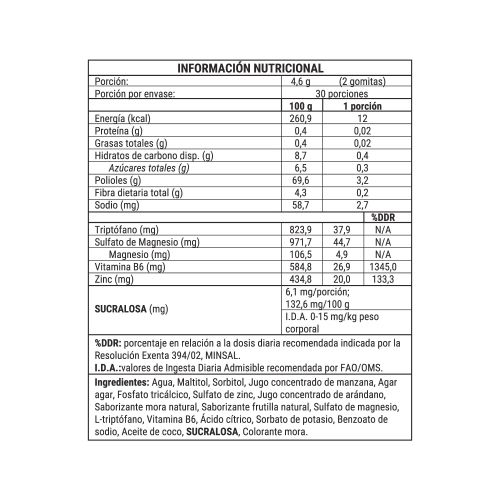 La dosis diaria son 2 gomitas.