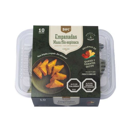 Crujientes empanadas de masa filo espinaca rellenas con queso y tomates secos.