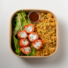 El toque cremoso de la mayonesa se combina con un crujiente mix de semillas (semillas de zapallo, sesamo y maravilla), que añaden una textura irresistible. La rúcula y el perejil fresco aportan frescura, mientras que el suave toque de aceite de oliva y aceite de sésamo realzan todos los sabores.