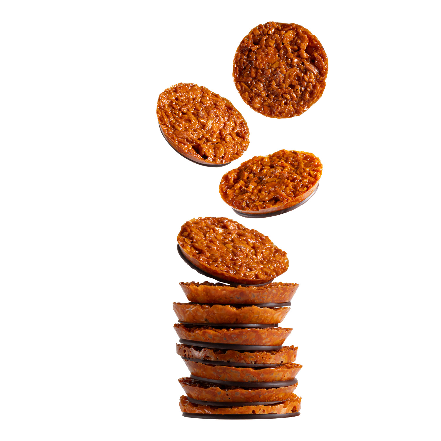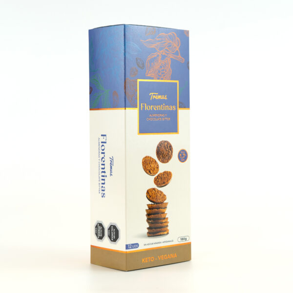 Las Galletas Florentinas Sin Azúcar añadida Tremus son una versión artesanal, keto y vegana del clásico europeo, elaboradas con almendras laminadas y una cobertura de chocolate bitter 60 %, logrando una combinación perfecta entre crocancia y sabor intenso.