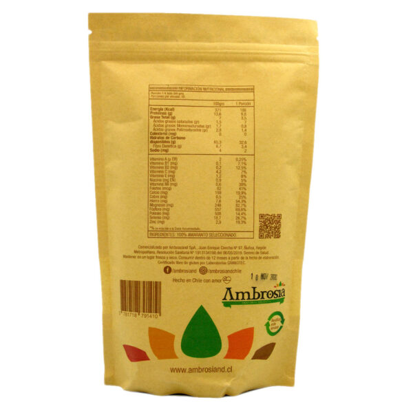 Harina de Amaranto, Sin Gluten, 500 grs, Marca Ambrosia