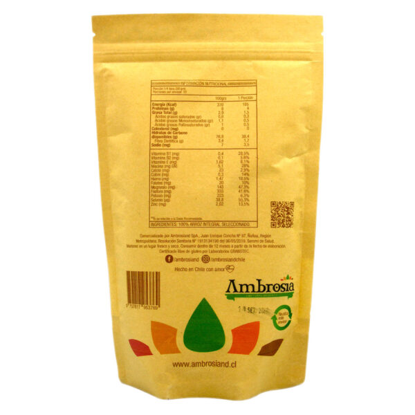 Harina de Arroz Integral, Libre de gluten, 500 grs, marca Ambrosia
