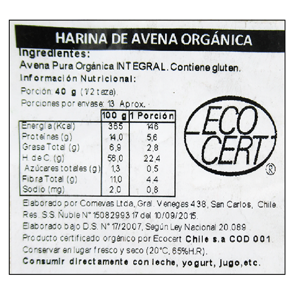 Harina de Avena Orgánica 500 grs Marca Ricorganico