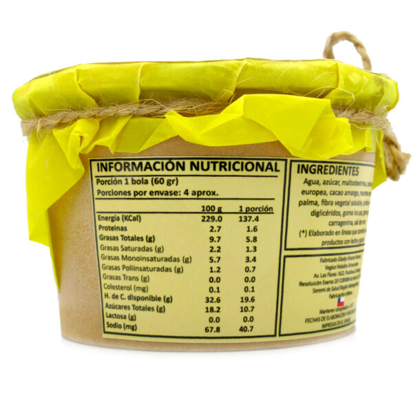 Los helados son elaborados sólo con ingredientes de origen natural, sin preservantes ni colorantes artificiales logrando la cremosidad de un helado de leche aunque SIN LECHE, HUEVO NI SOYA