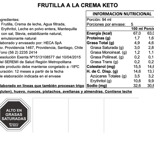 Helado Keto, Sin Gluten, Sabor Frutillas a la Crema, 120 Ml, Marca El Taller.