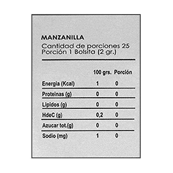 Infusión Mazanilla 100% natural 25 bolsitas marca Natural Herbal