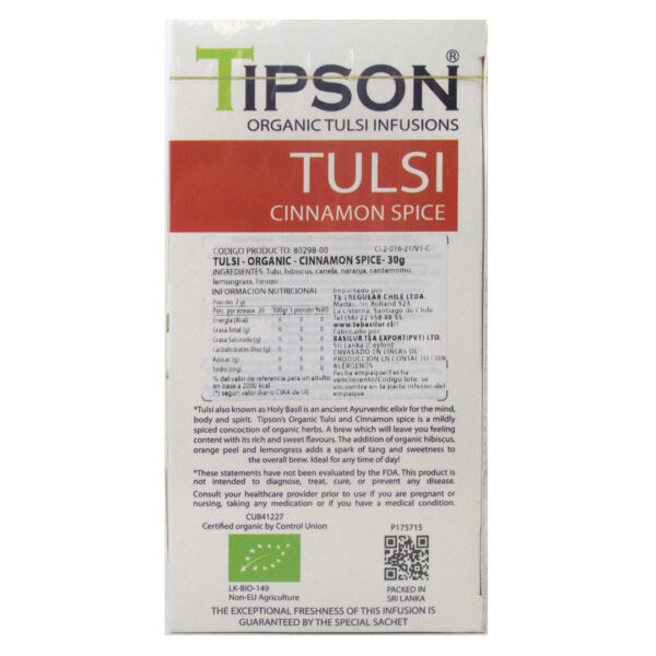 Infusión Orgánica Tulsi Cinnamon Spice 25 bolsas Marca Tipson
