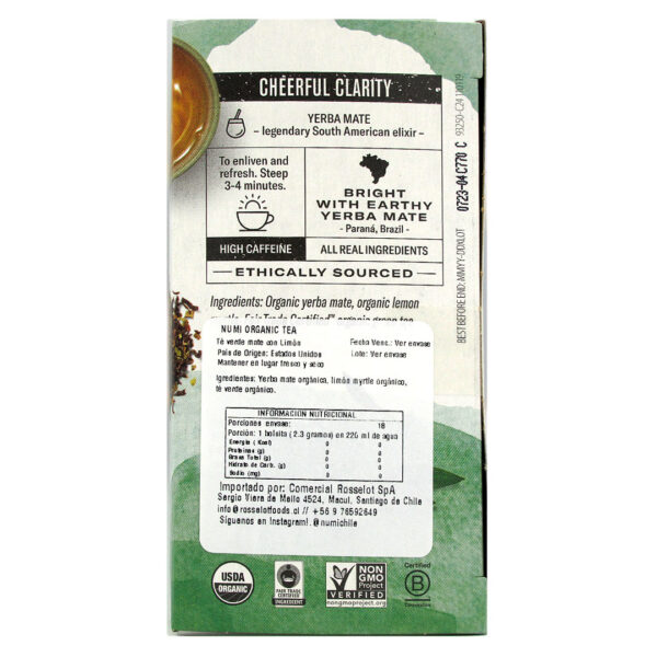 Infusiones Mate Limon Organico 18 Bolsitas Marca Numi