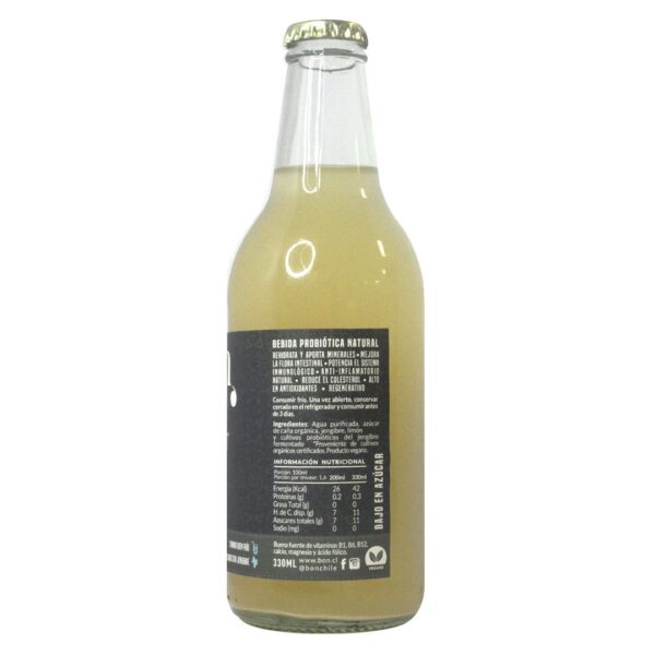 330 mlExquisita bebida natural de jengibre con un toque sutil de gas, hecho con ingredientes seleccionados. un super-alimento fermentado y probiótico con gran contenido en microorganismos vivos como bacterias y levaduras, así como enzimas de alto valor que mejoran la microbiota intestinal, cuidan de nuestros huesos y fortalecen nuestro sistema inmunológico, entre muchos de los beneficios del Ginger Brew para la salud.