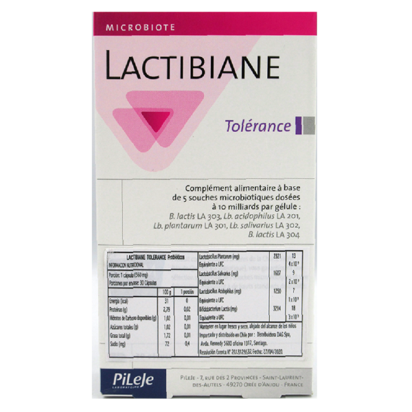 Lactibiane Tolerance Probiótico de 5 cepas en concentracion de 10 mil millones 30 cápsulas Marca Lac