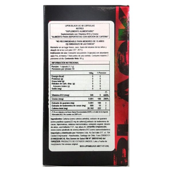Lipo 6 Black UC Complemento Alimenticio con Cafeina 60 cápsulas Marca Nutrex