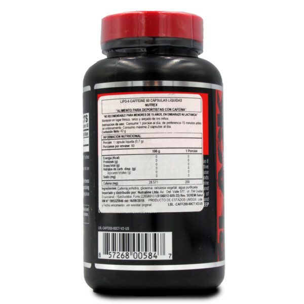 Lipo-6 caffeine es un suplemento que te aporta energía de forma rápida para aumentar tu capacidad física y mental antes, durante y después de tus entrenamientos. También puede ser consumido en cualquier momento del día cuando necesites energía extra y una máxima concentración. Cada cápsula contiene 210 mg de cafeína..