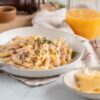 Se acompaña con papas fritas al horno —doradas y crujientes— y arroz graneado suelto.