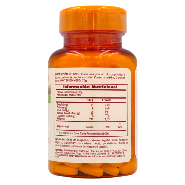 Magnesio Sin Gluten Sin Gmo 250 mg 100 Capsulas Marca Sundown